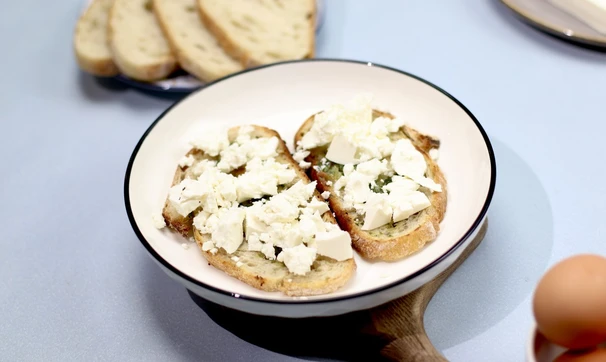 Тост с глазуньей, фетой и песто