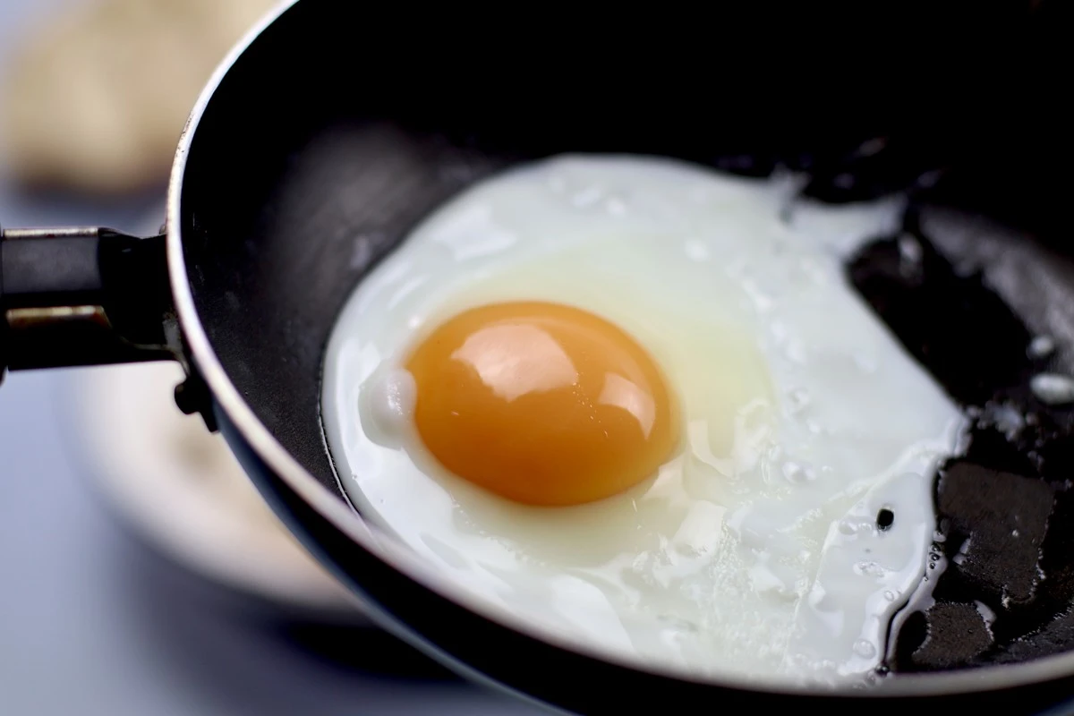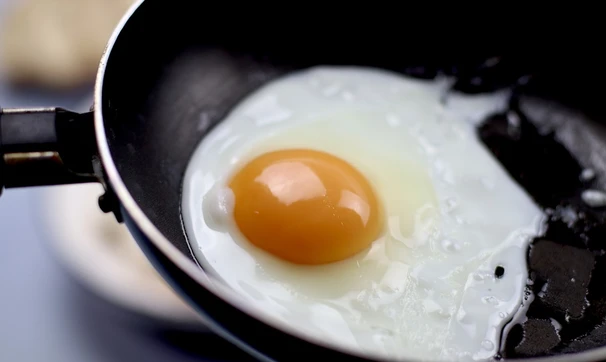 Приготовьте глазунью на разогретой сковороде. Посолите и поперчите по вкусу.