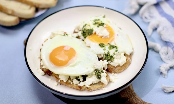 Рецепт «Тост с глазуньей, фетой и песто»