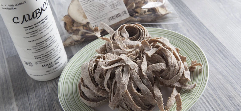 Рецепт «Цельнозерновая лапша с сливочно-грибным соусом»