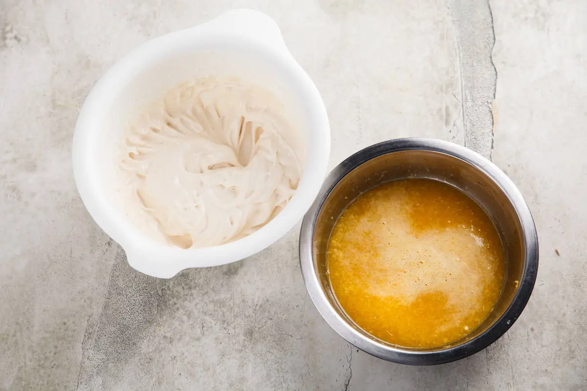 Белки взбейте с сахаром до устойчивых пиков, аккуратно смешайте с соком, перелейте получившуюся смесь в контейнер и заморозьте. Такое мороженое получится более твёрдым, чем магазинное. Для того, чтобы сделать более мягкое мороженое, можно использовать мороженицу либо взбить смесь ещё раз после 2-3 часов в морозилке, а затем снова заморозить.