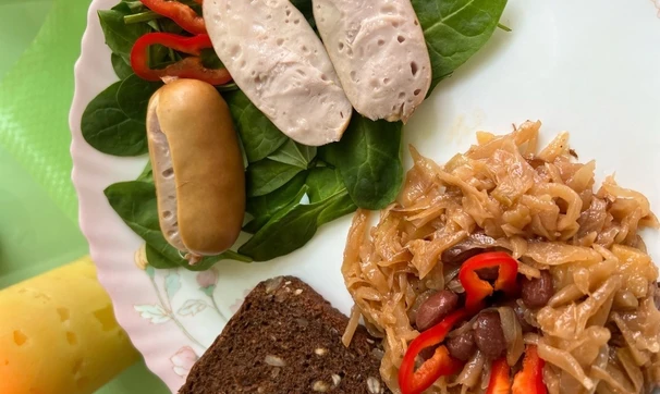 Тушёная капуста с фасолью