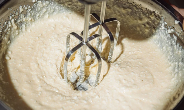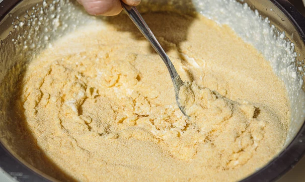 Добавьте в тесто манку и соль, перемешайте и оставьте на 20 минут для набухания манки.