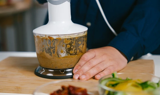 Один огурец измельчите в блендере, смешайте с мёдом, соевым соусом, горчицей и оливковым маслом.