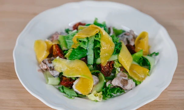 Тёплый салат с манго и куриной печенью