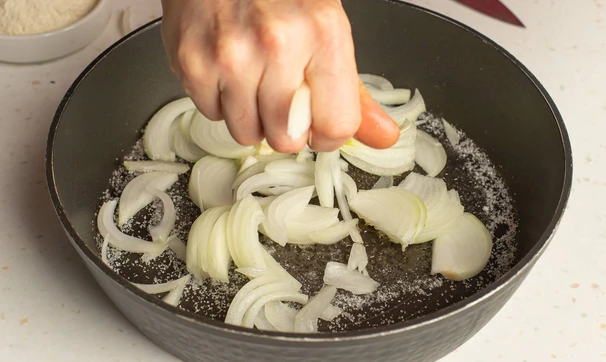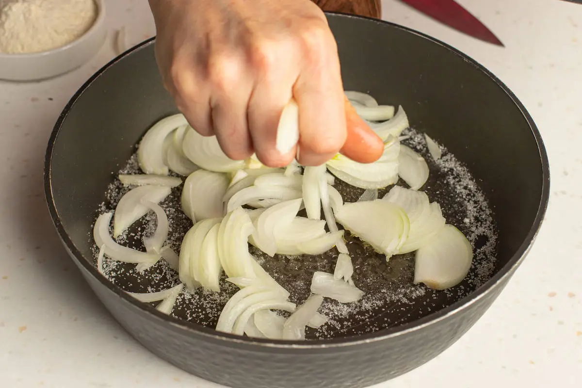 Жарьте, пока лук не станет коричневым, сладким и чуть хрустящим.
