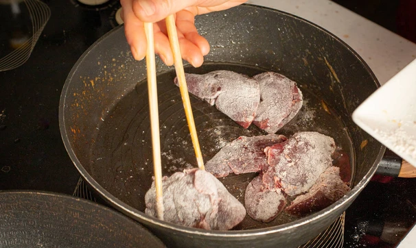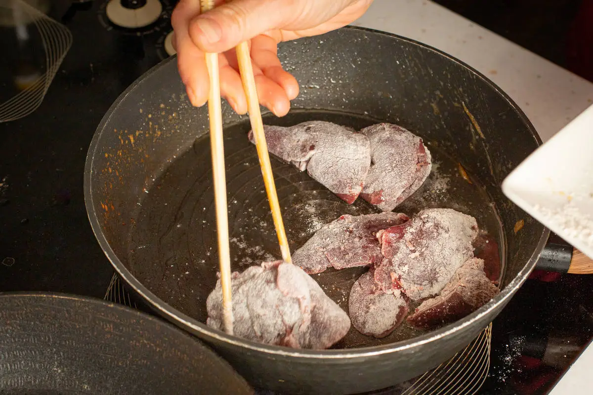 Важно не пересушить печень, чтобы внутри она осталась сочной и чуть розоватой.