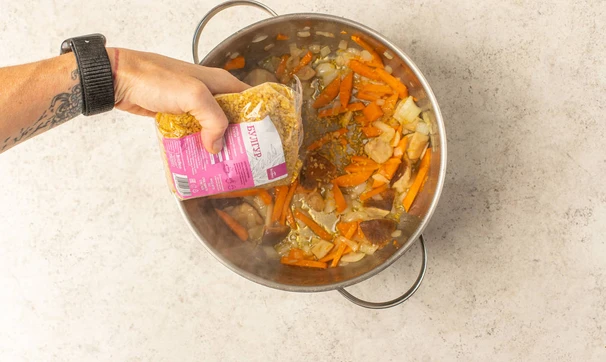 Залейте 3 литрами воды, доведите до кипения и варите на среднем огне около 20 минут до готовности картошки.