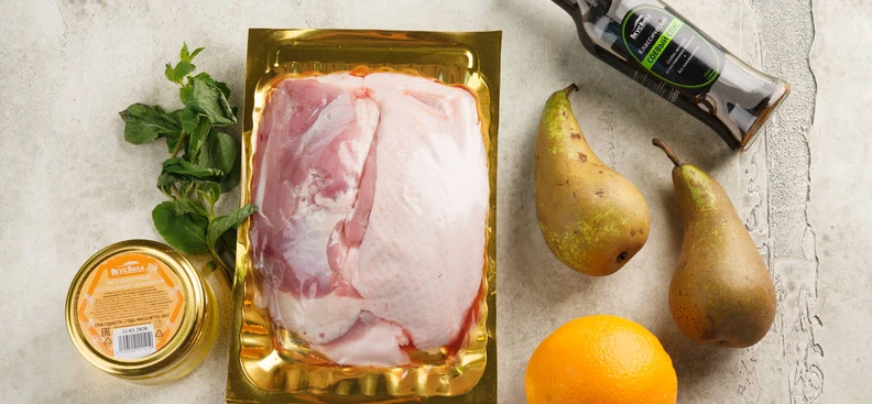 Утиная грудка с грушей и брусничным соусом
