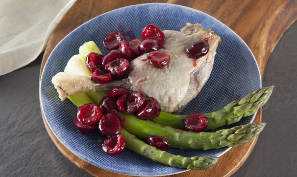 Рецепт «Утиное конфи со спаржей и соусом из черешни»