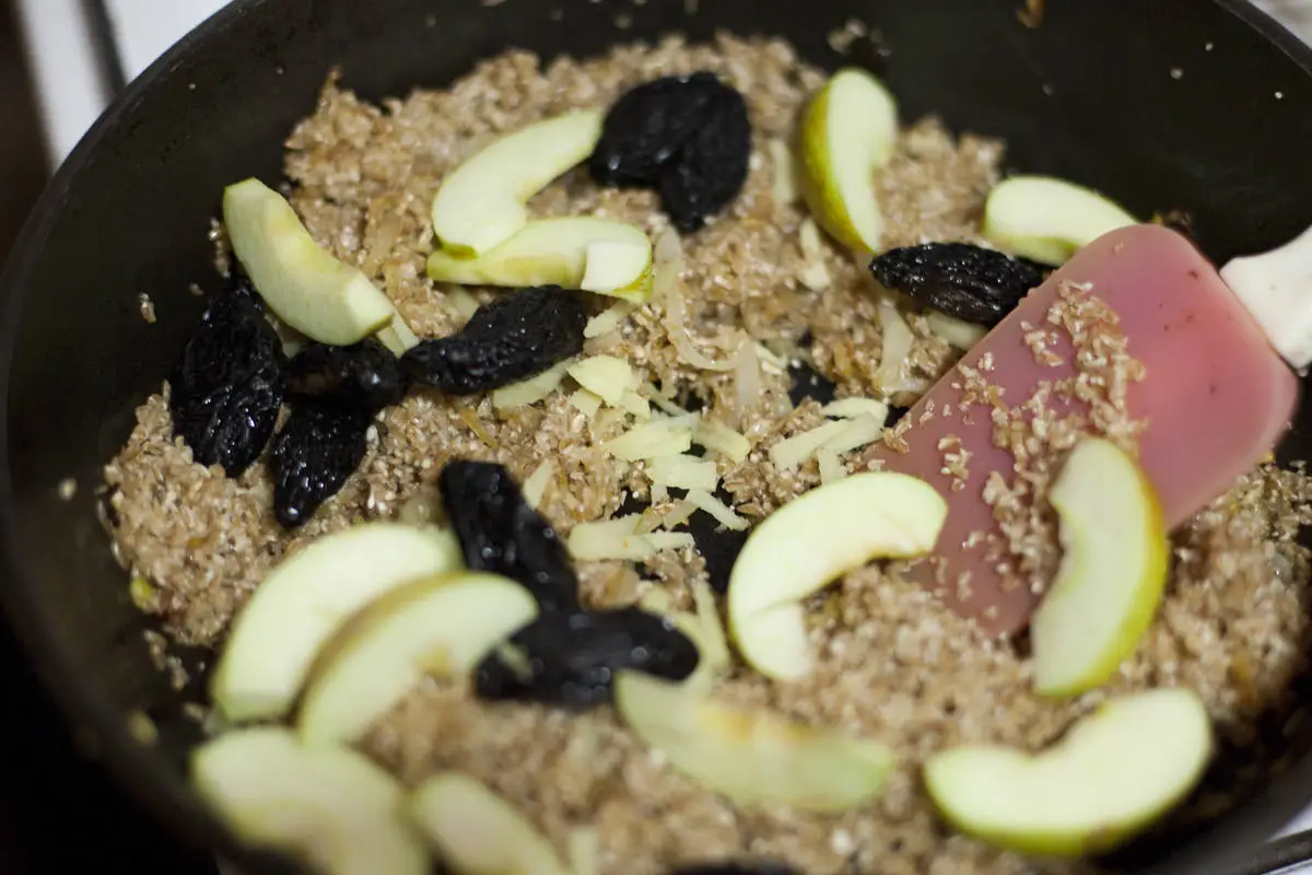 Рецепт «Утиные окорочка с полбой, яблоками и черносливом»