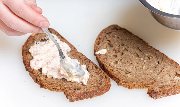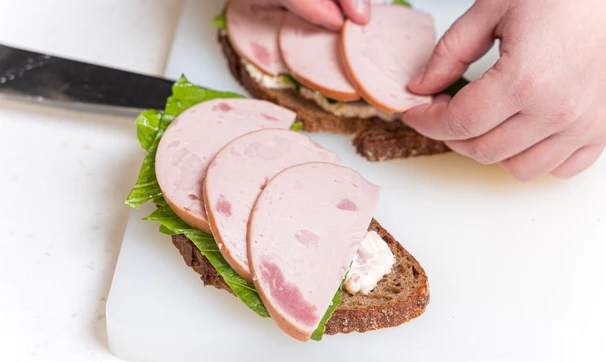 Оригинальный бутерброд с интересным соусом и колбасой, который можно приготовить на завтрак или для перекуса.