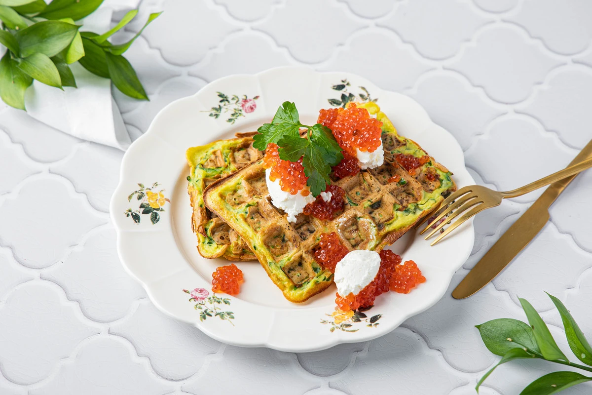 Вафли с цукини, крем-чизом и икрой — вкусный, полезный и питательный завтрак. Это не просто выпечка, в них содержится большое количество клетчатки. Такие вафли хороши в любое время года, но особенно вкусными они будут в сезон кабачков — берите на заметку наш рецепт и радуйте себя и близких.