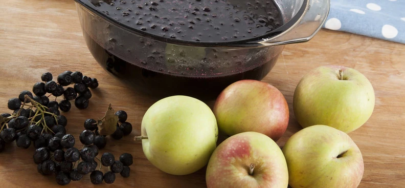 Ароматное и немного терпкое варенье яркого фиолетово-красного цвета с целыми кусочками яблок — настоящее зимнее лакомство! Яблоки выбирайте крепкие, кисло-сладких сортов.
