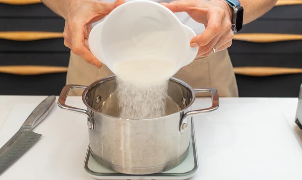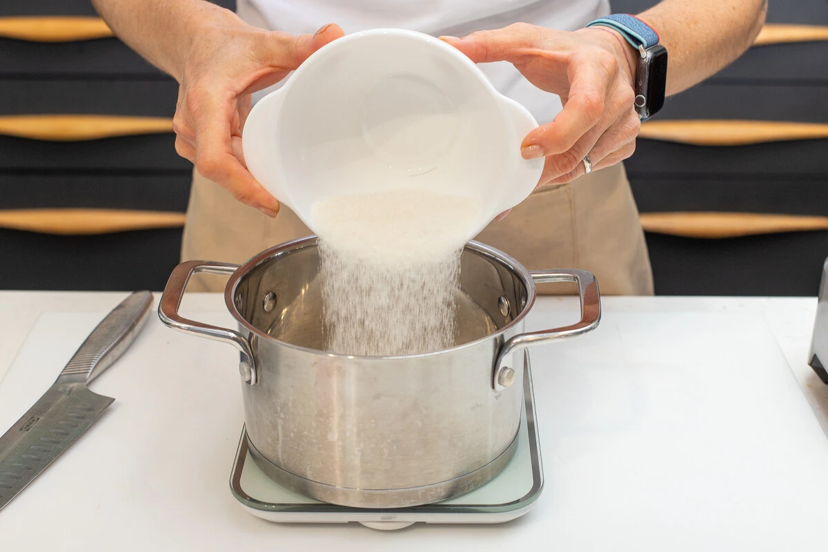 Насыпьте сахар в кастрюлю.