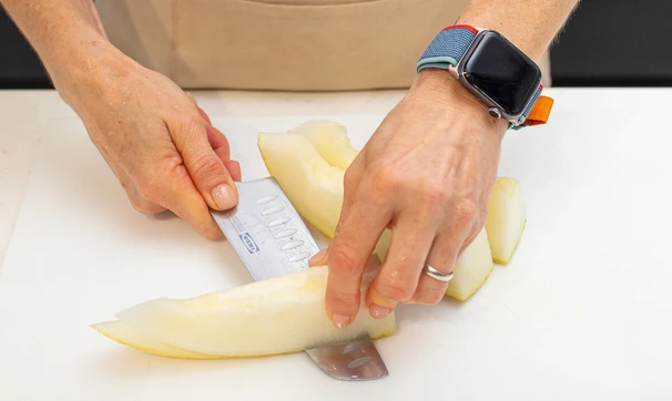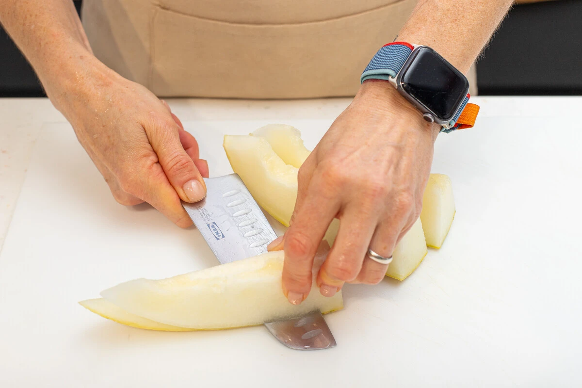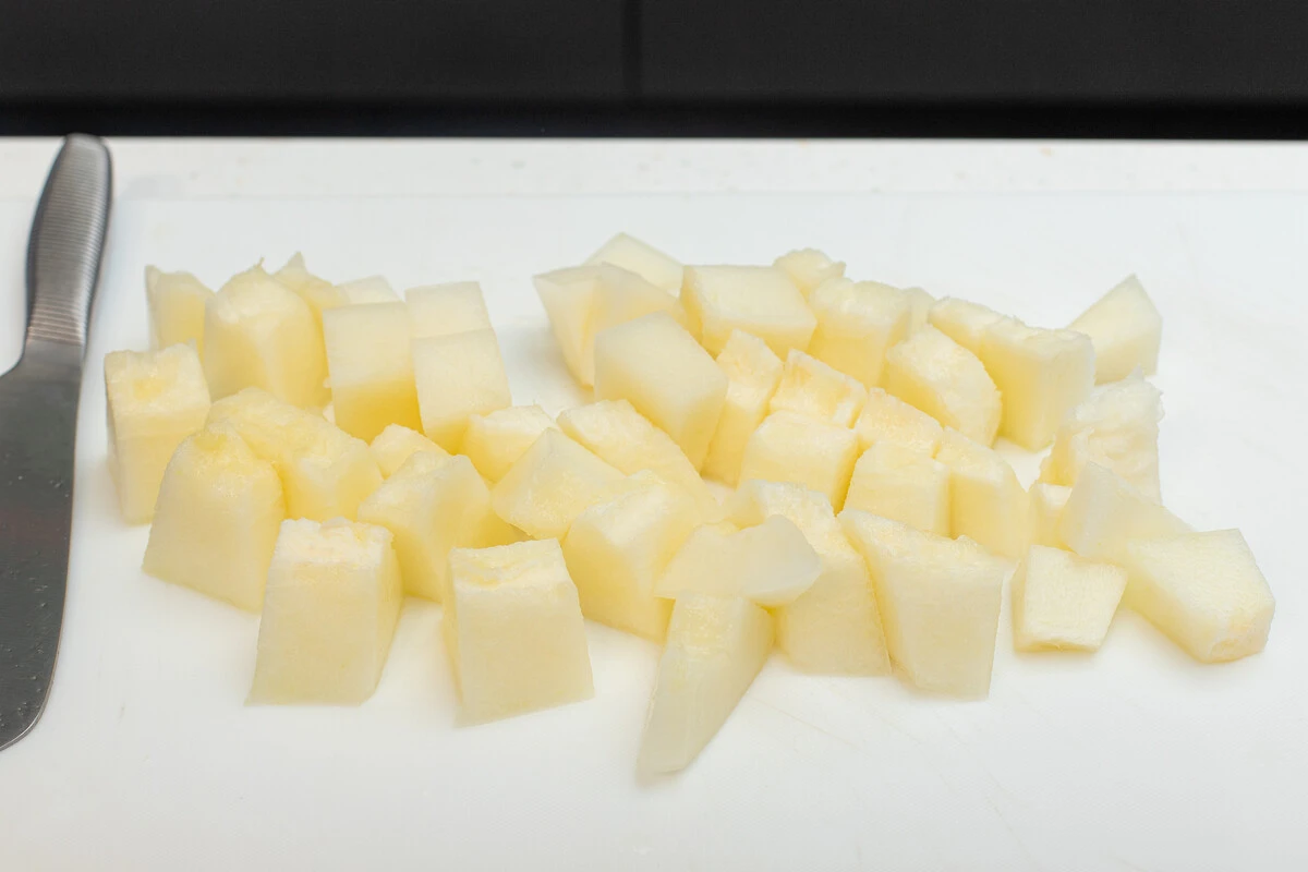 Дыню очистите от кожуры и семечек.