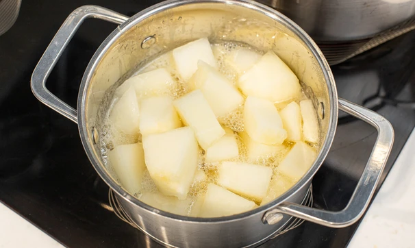 Нарежьте кусочками среднего размера.