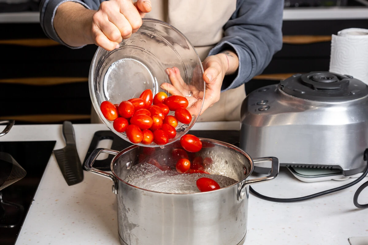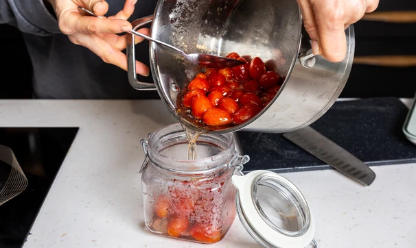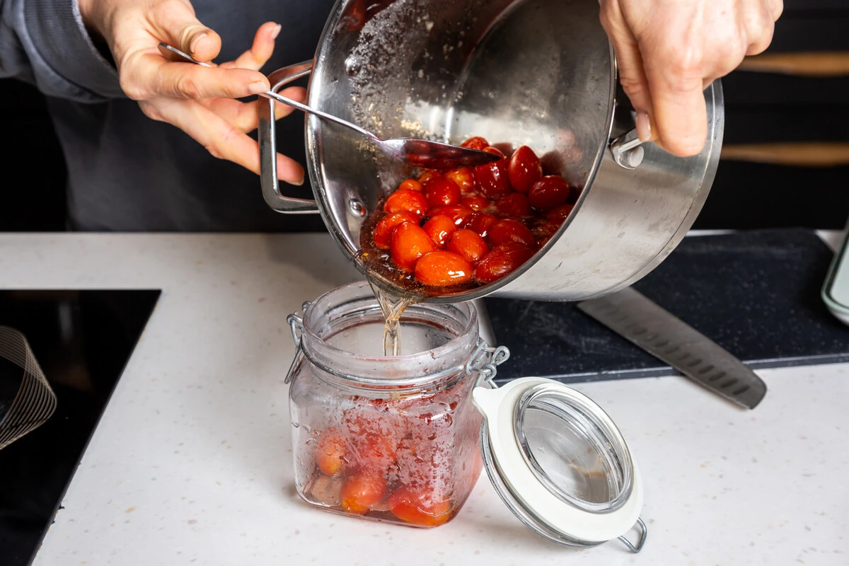 Варенье из помидоров черри — необычное, но очень вкусное лакомство. Его можно подать просто с чаем, а можно с твёрдыми сырами или добавить вместо мёда в сырную тарелку — получится и аппетитно, и оригинально.