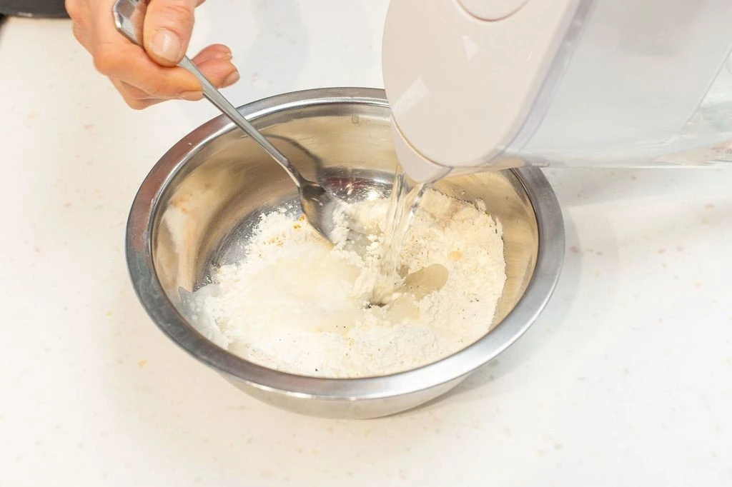 Добавьте воды и перемешайте до однородности, чтобы получился кляр консистенции сметаны.