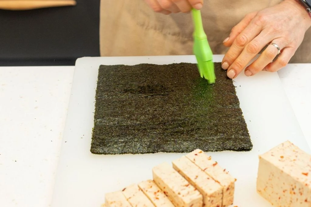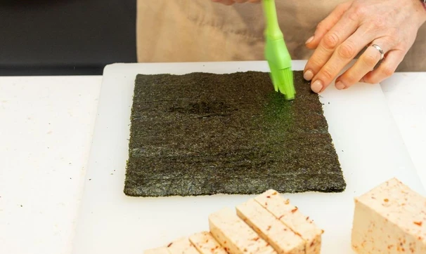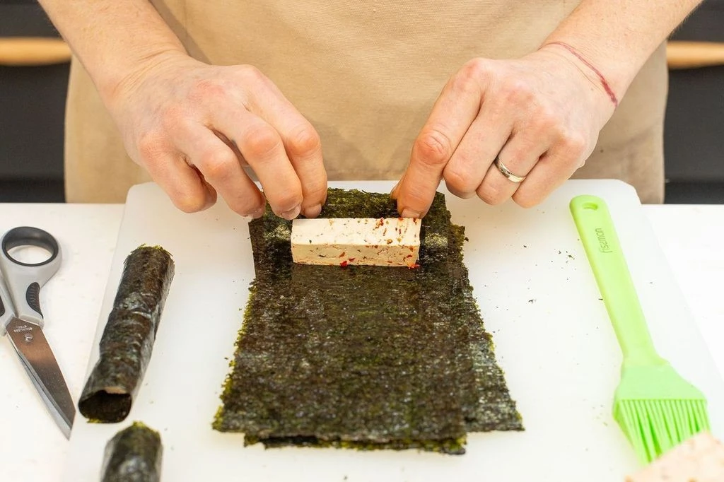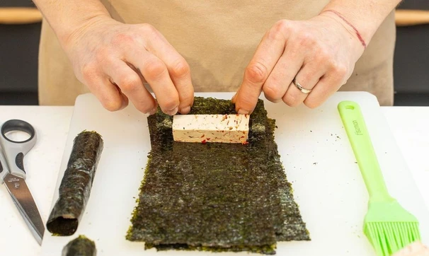 В каждый лист нори заверните брусочек тофу.