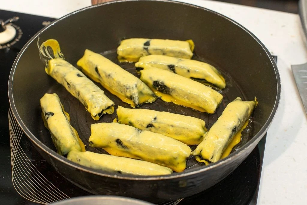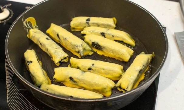 Обмакните все брусочки в кляре со всех сторон и выложите на разогретую с маслом сковороду.