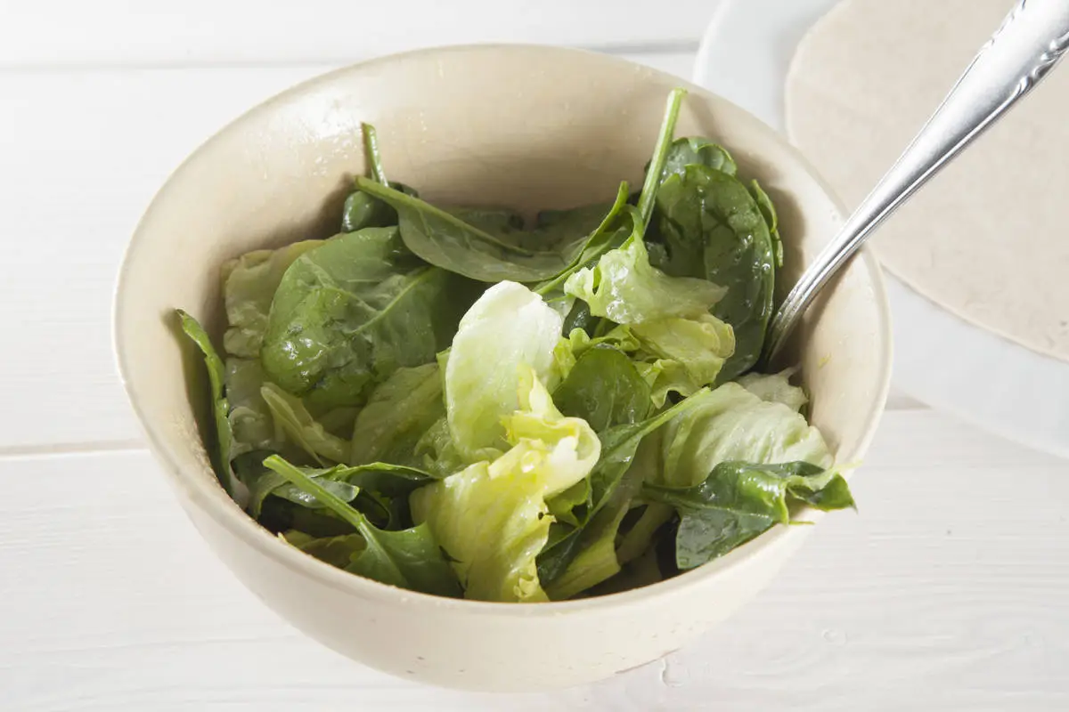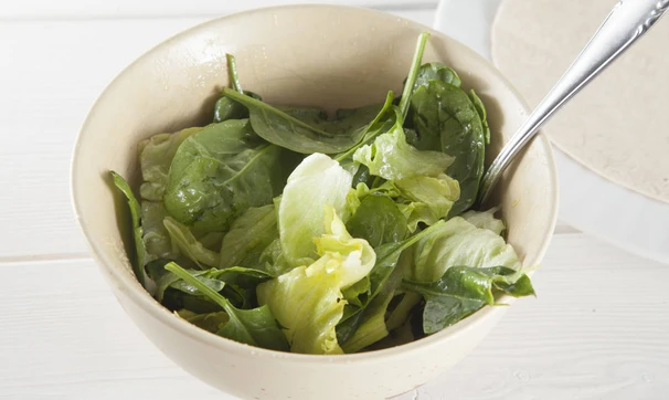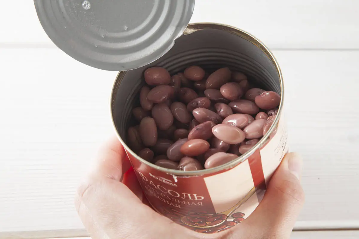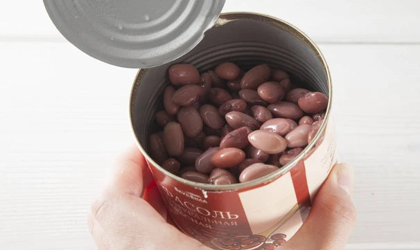 Листья салата помойте, обсушите и заправьте маслом, помидоры нарежьте ломтиками. Вскройте банку фасоли и слейте жидкость.