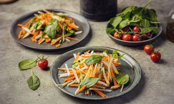 Добавьте в рацион лёгкий свежий салат, насыщенный клетчаткой и витаминами, которых так не хватает весной. Салат с дайконом и огурцами хорошо сочетается с любыми гарнирами, особенно с картофельным пюре и отварной гречкой.
