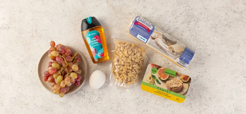 В рецепте используются товары из категорий: Замороженные продукты; Колбаса, сосиски, деликатесы; Орехи, чипсы и снеки; Молочные продукты, яйцо