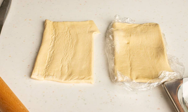 Тесто предварительно разморозьте, переложив его в холодильник за 4-5 часов до готовки. Или при комнатной температуре за 1 час.