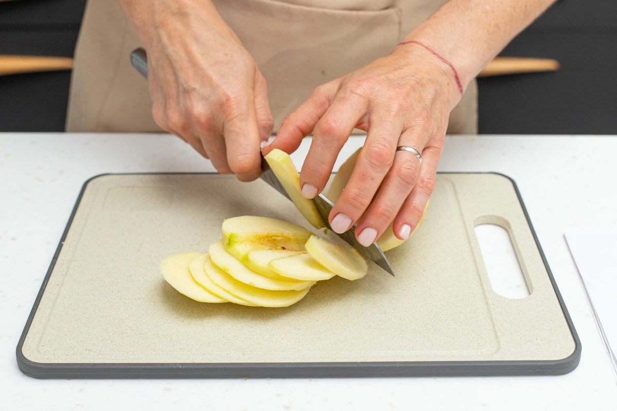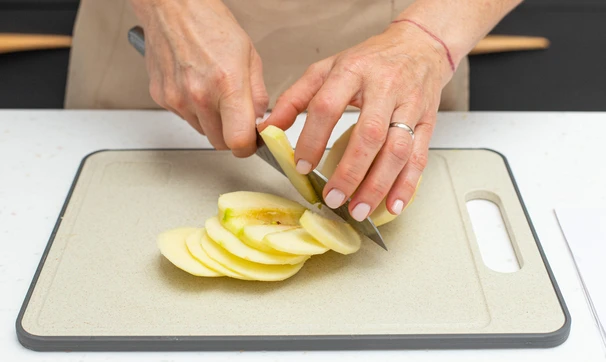 Яблоки помойте, удалите сердцевинки, почистите. Нарежьте кусочками среднего размера.