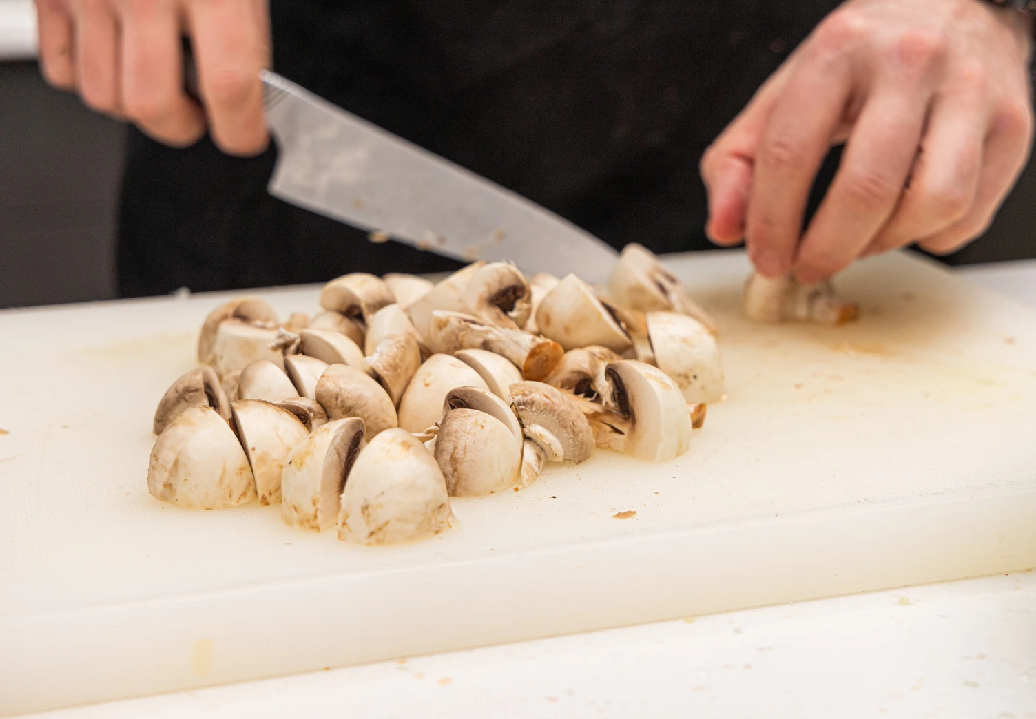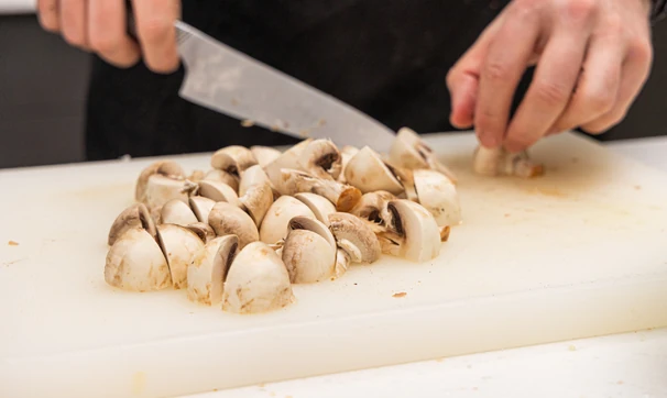 Шампиньоны нарежьте произвольными кусочками.