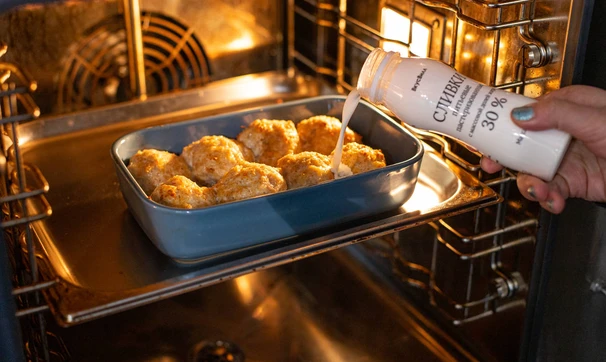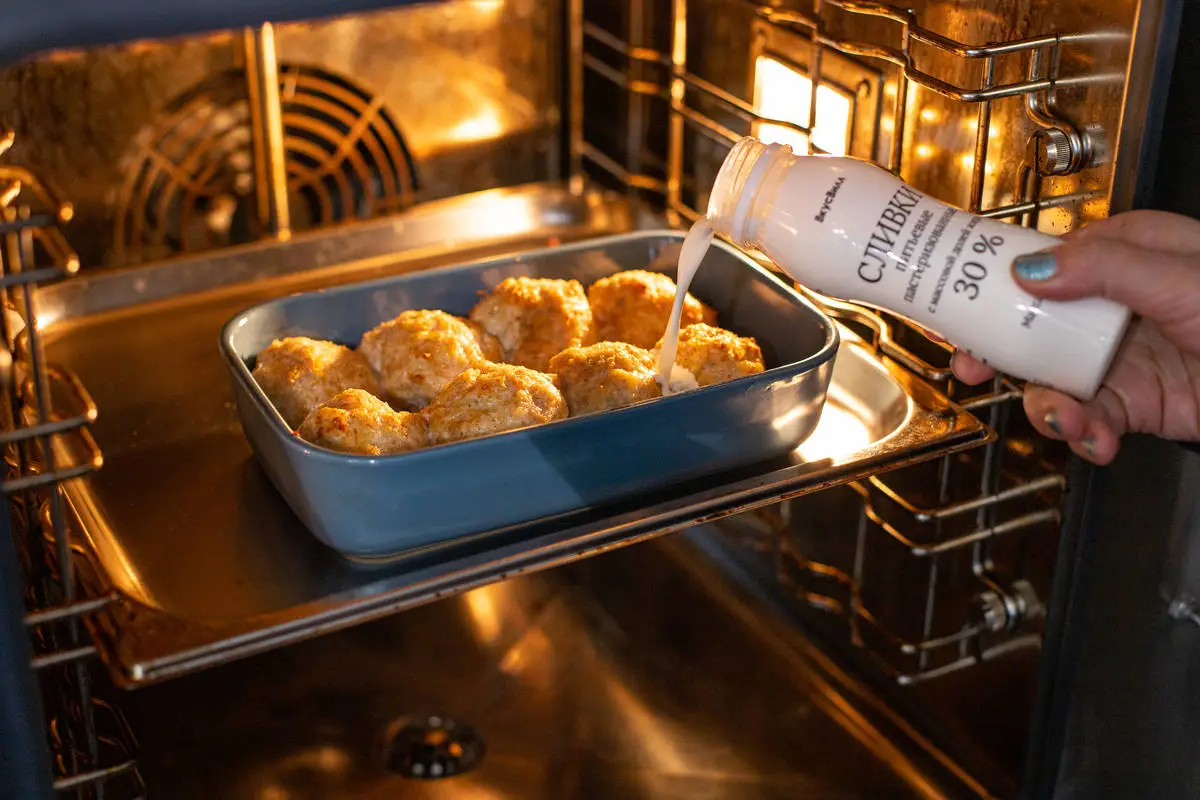 Если фарш суховат, добавьте немного сливок, если слишком жидкий — немного панировочных сухарей.
