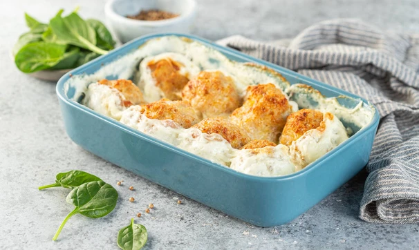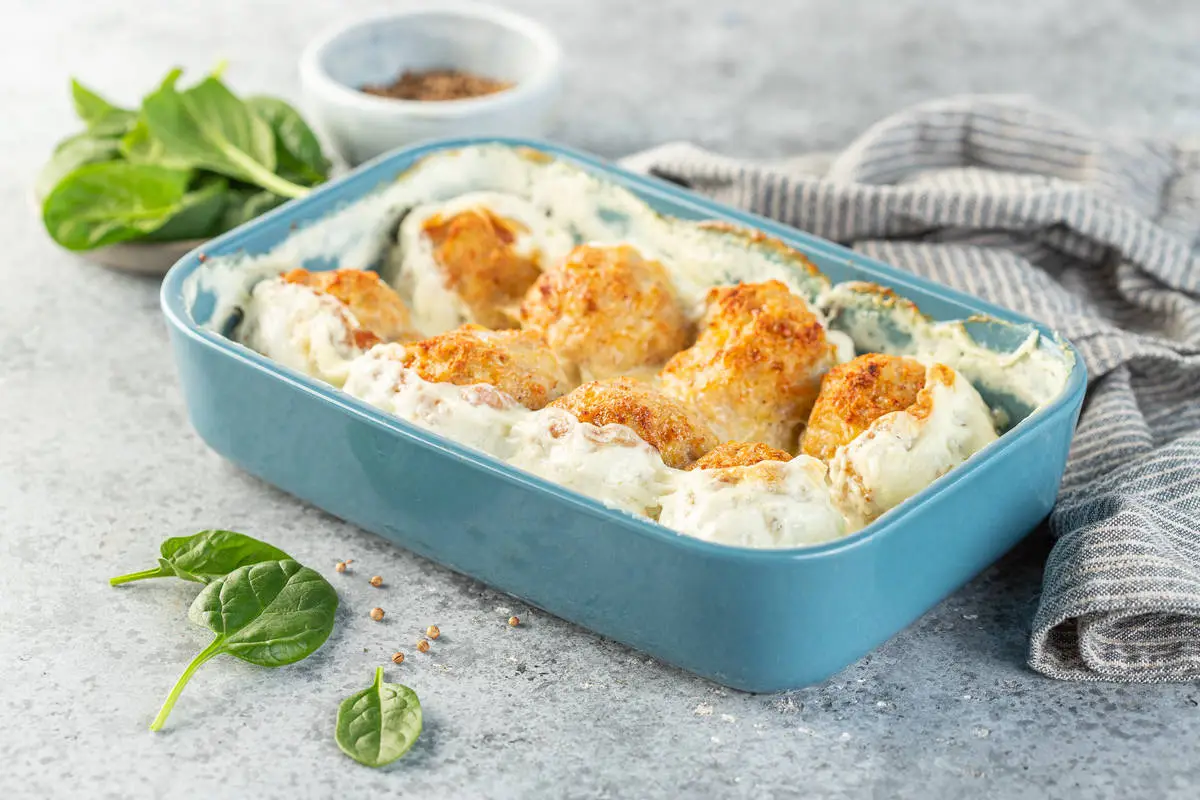 Затем влейте в форму сливки и запекайте ещё 10-15 минут.