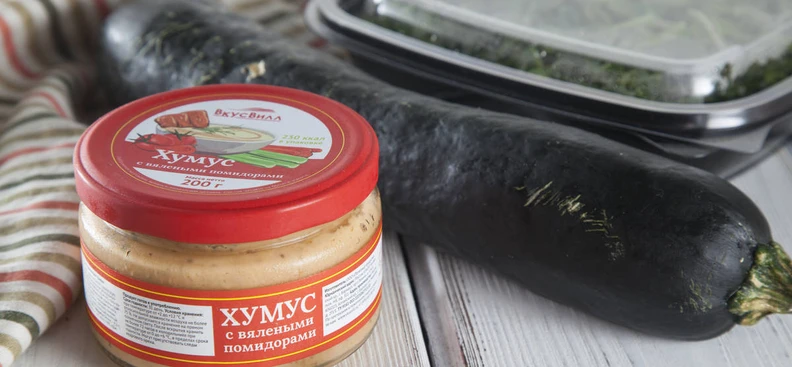 Обжаренные цукини выложите на блюдо, на каждый кружок положите примерно по столовой ложке хумуса, украсьте микрозеленью. Подавайте блюдо охлажденным.
