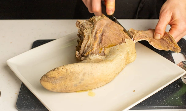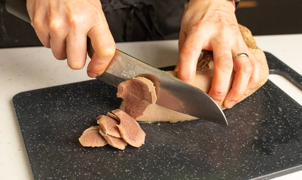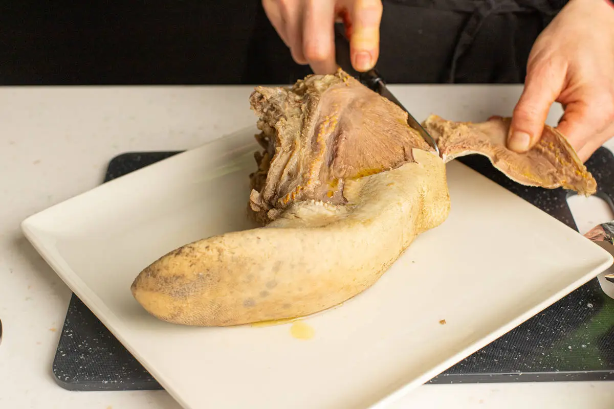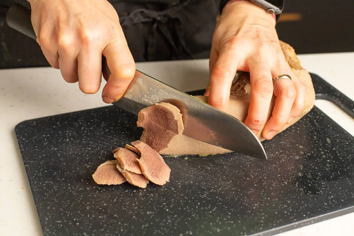 Язык разморозьте заранее в холодильнике в течение 8-10 часов.
