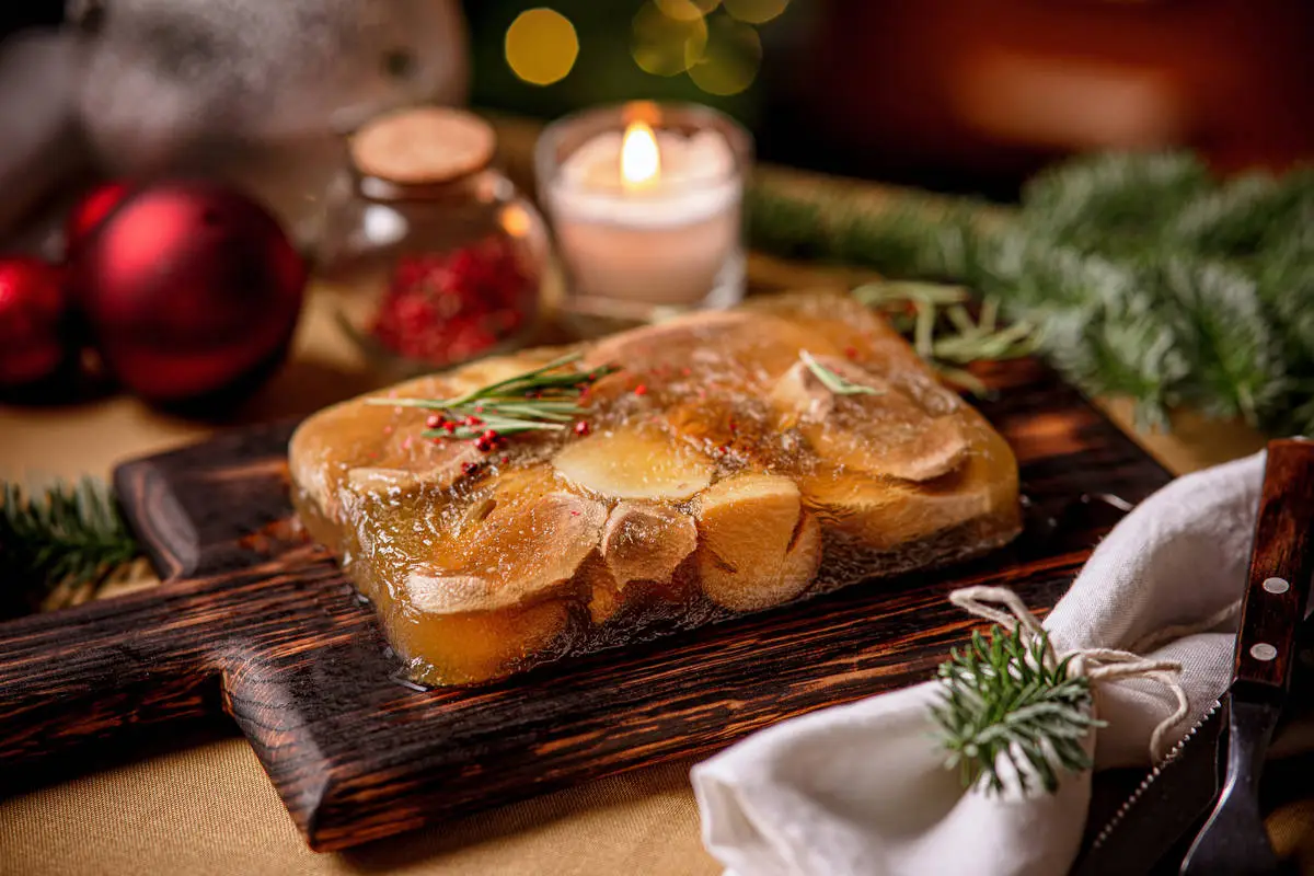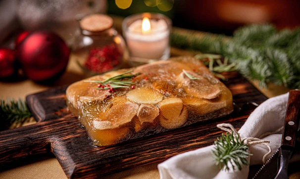 Язык — и сам по себе праздничный деликатес, а уж в заливном, да ещё и с белыми грибами — вообще царское угощение. Готовьте заливное заранее, чтобы на праздник просто достать его из холодильника и подать на стол.