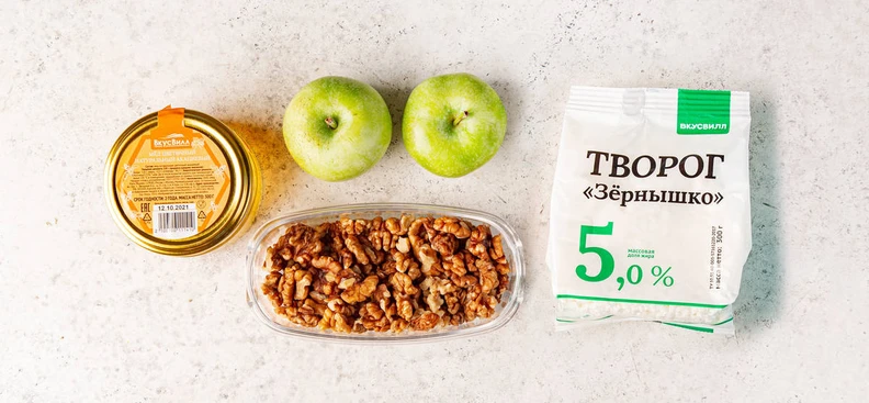 Рецепт «Запечённые яблоки с творогом и орехами»
