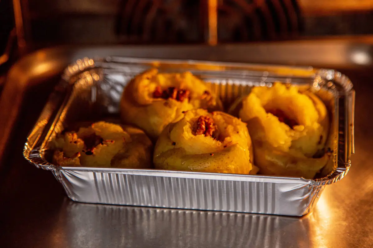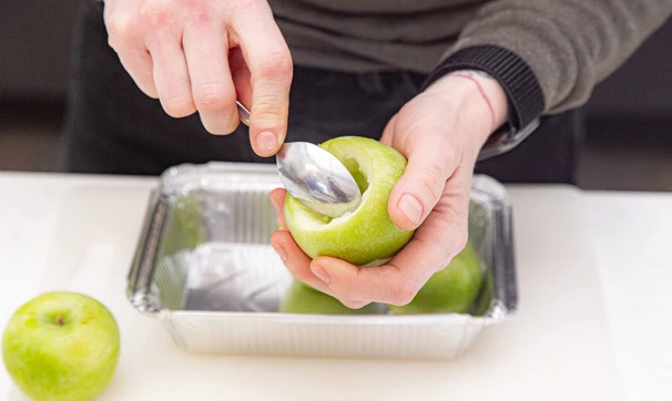 Запеките в духовке в течение 15 минут при 200 °C до мягкости яблок.