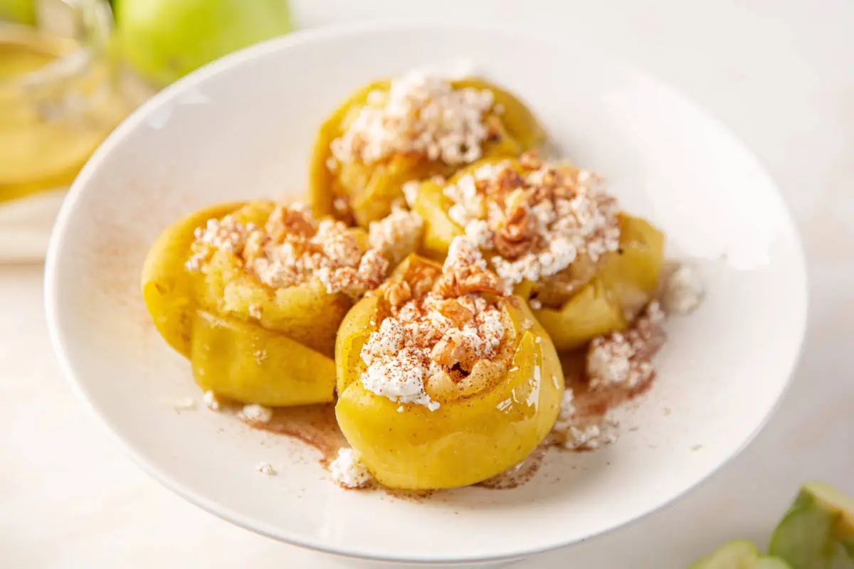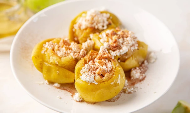 Запечённые яблоки с творогом и орехами