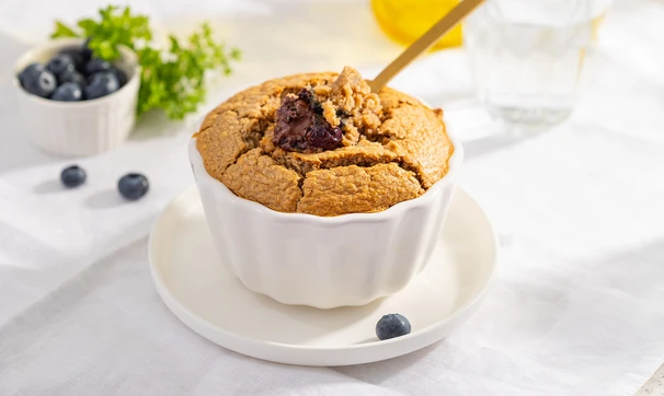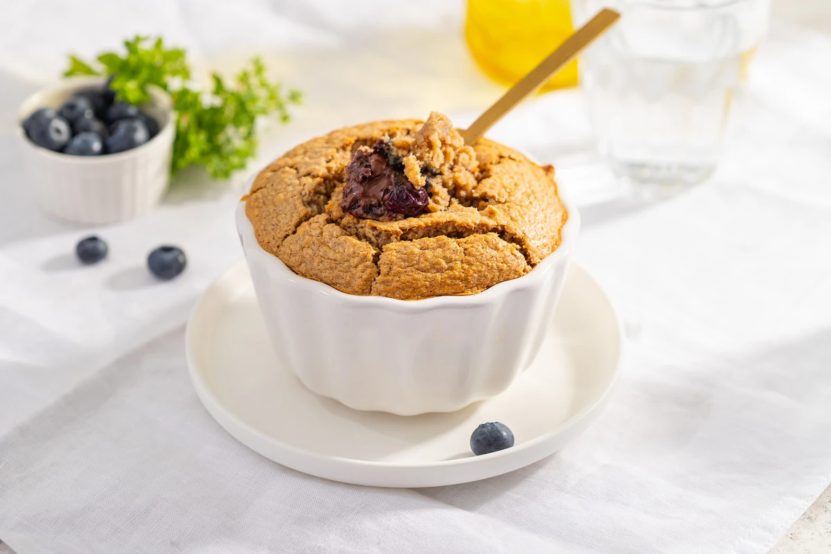 Если вам надоели традиционные блюда из геркулеса, попробуйте этот рецепт. Модная запеканка из овсянки уже покорила миллионы людей — она вкусна и на завтрак, и к чаю, и как сытный полдник. Это блюдо напоминает шоколадный фондан: отломите ложечкой нежный, похожий на маффин, мякиш — и внутри запеканки вы найдёте расплавленный шоколад и ягоды. Мы приготовили запеканку из овсянки без продуктов животного происхождения. А ещё в этом блюде нет глютена.