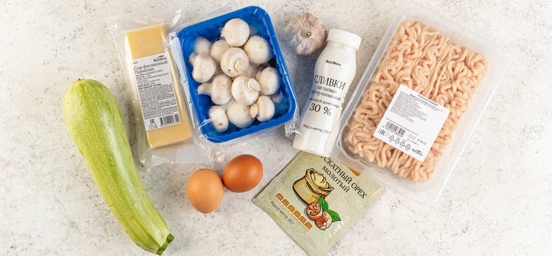 В рецепте используются товары из категорий: Масла, соусы, специи, сахар и соль; Мясо, птица; Молочные продукты, яйцо; Овощи, фрукты, ягоды, зелень